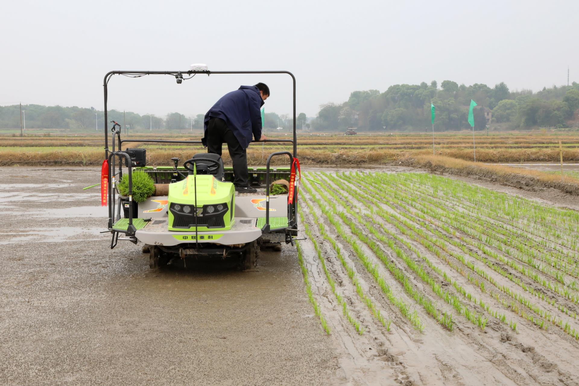▲中联重科水稻机插秧“演武”现场
