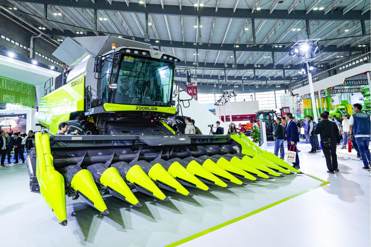 ▲中联重科打造的国内**大喂入量收割机和400马力混合动力拖拉机