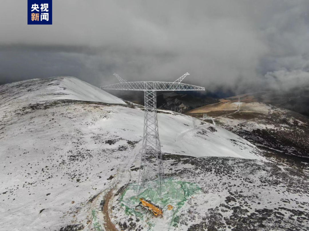 △四川省甘孜州巴塘县德达乡色烔玛山上的金上—湖北特高压工程铁塔(图片来源:央视新闻)