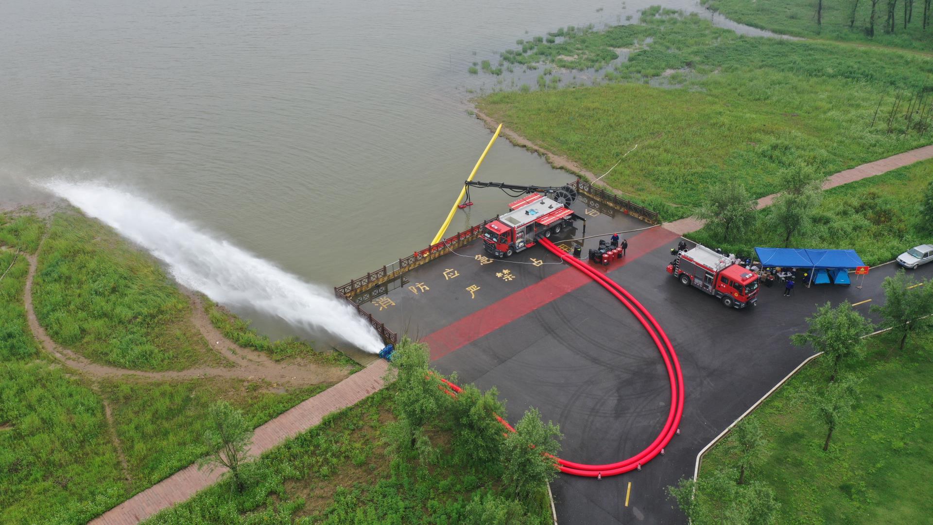 中联重科泵浦消防车为大流量远程供水系统的子车型,与水带敷设消防车和器材消防车配套使用,该系统可将几公里甚至几十公里以外的天然水源,科学合理,及时有效,不间断地输送到火灾现场 香蕉91视频APP,可同时给多台消防车或消防水枪,消防炮连续长时间供水,为火灾现场提供坚强有力的供水保障, 。