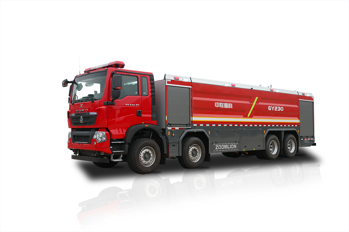 中联牌GY230-6型供液消防车,整车机动灵活,整车载液量大,装备供液(向其他灭火装备输送泡沫液)与吸液(迅速补给自带供液罐)两套独立的螺旋转子泵供吸系统,可向灭火装配远距离不间断输送泡沫原液,是城市应急救援消防队与企业专职消防单位必备首选灭火后勤保障利器。