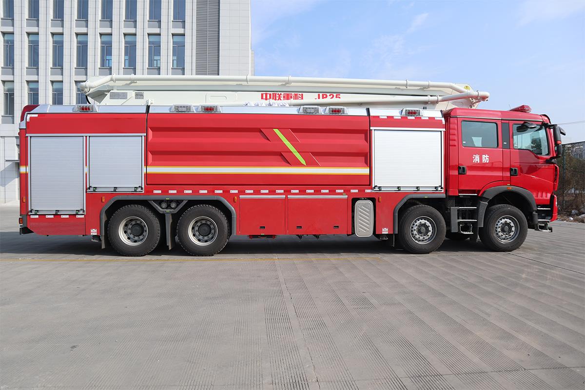 中联重科JP25型举高喷射消防车,结合国内外消防车的先进理念和消防实战创新设计而成,具备强大的灭火功能,整车性能优越,快速高效,操作性、安全性及智能化控制水平处于国内先进水平。