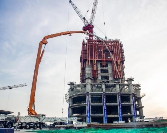 101米碳纤维泵车武汉中心施工现场